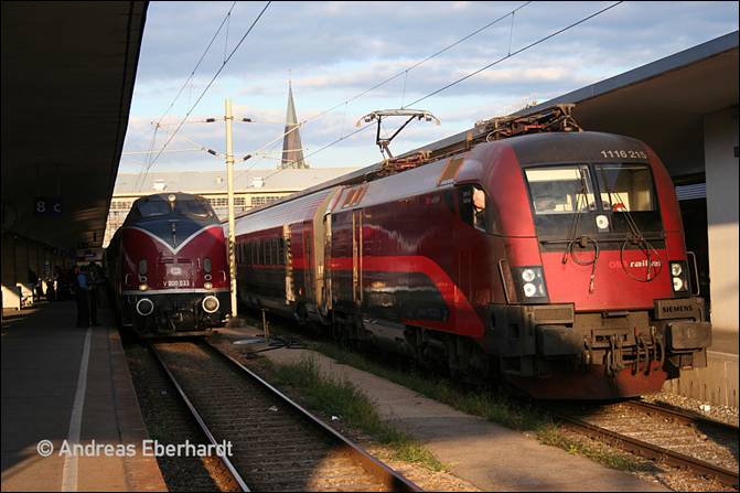 mit einem ebenfalls dunkelroten ÖBB-railjet-TAURUS. – Den Abend ließen wir anschließend in gemütlicher